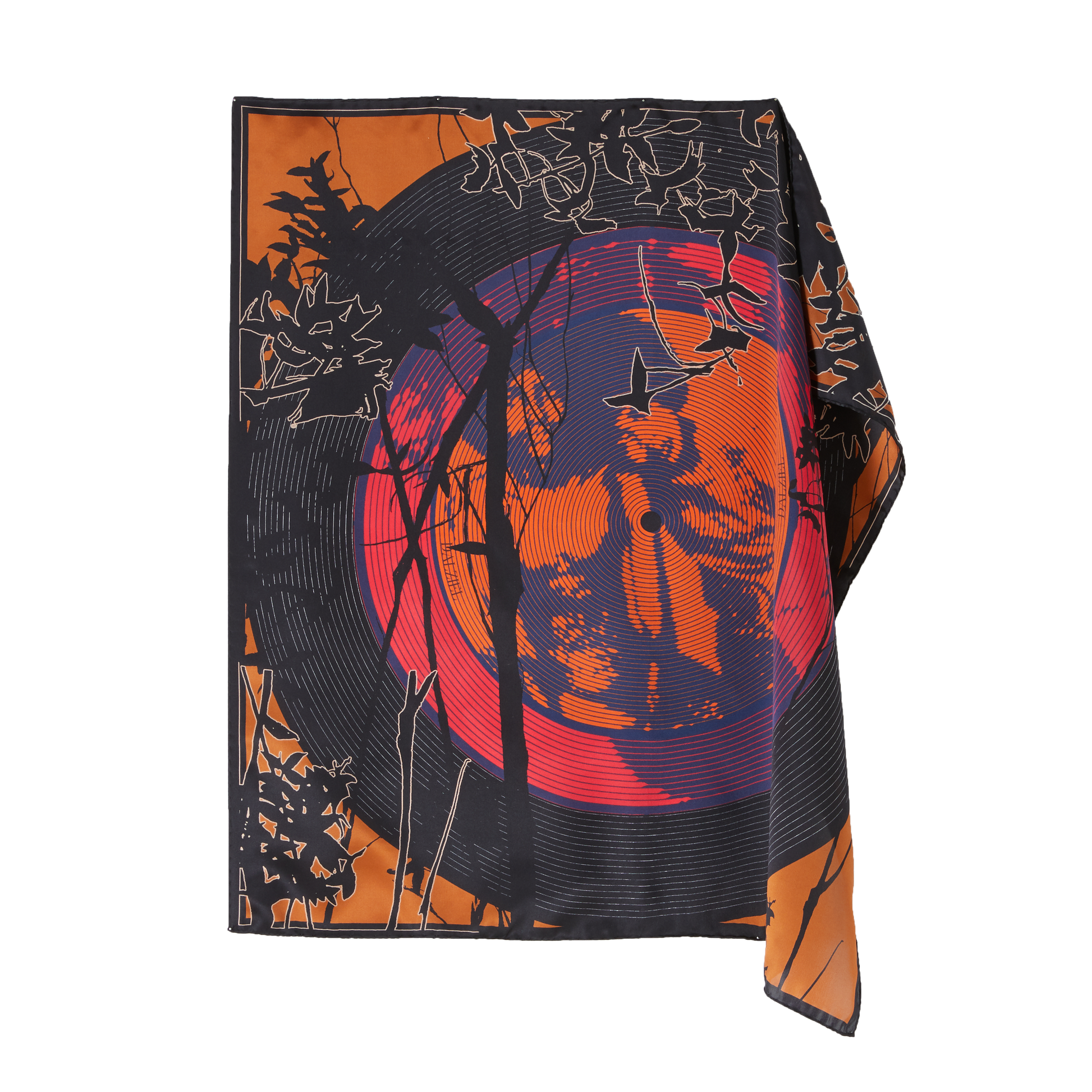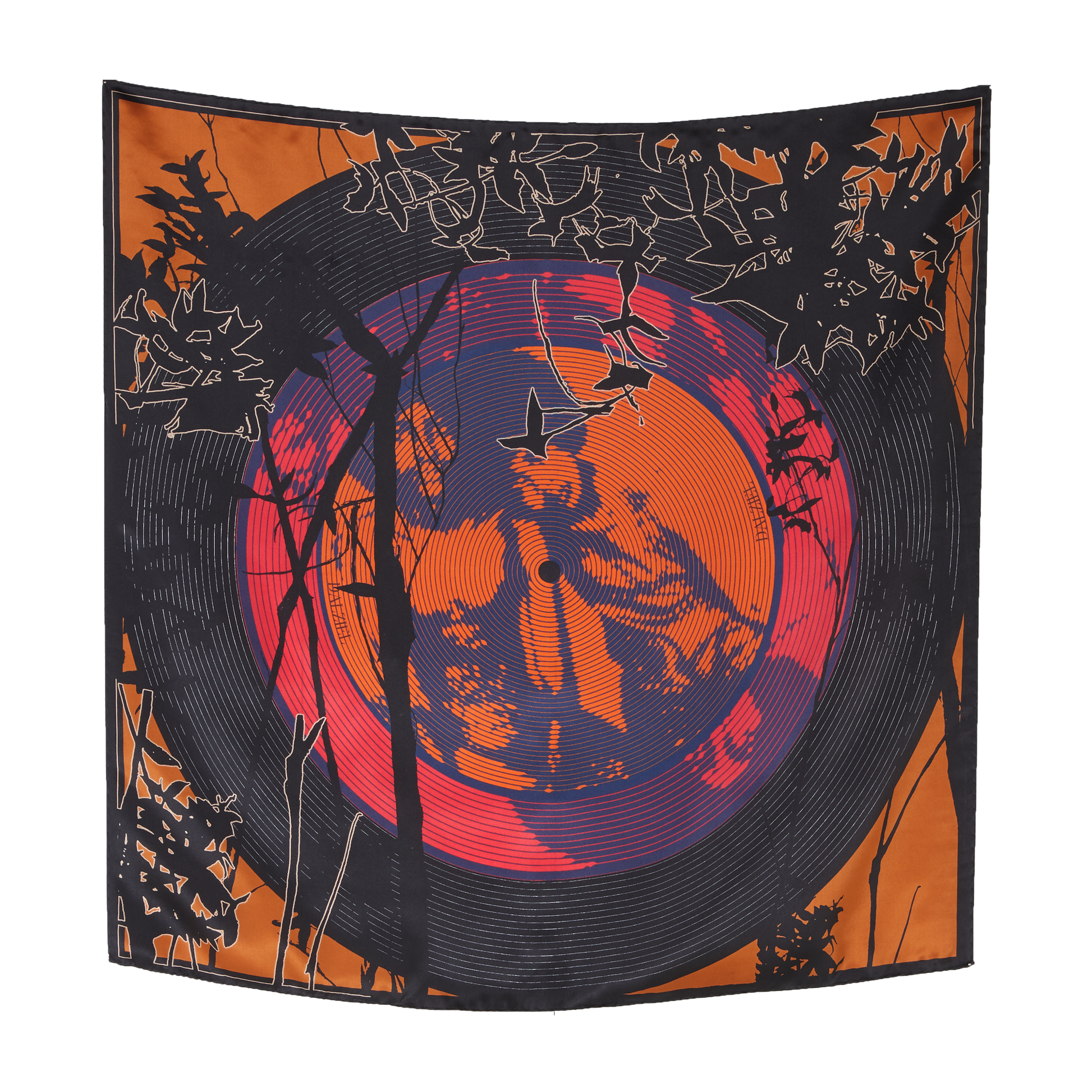 Chaque détail de ce foulard offre une méditation visuelle sur l'amour, la mélodie de la vie et les questions qui persistent. Les contrastes de couleurs symbolisent la dualité de l'existence, tandis que le motif du vinyle rappelle la constante rotation du temps. Portez cet accessoire pour une déclaration artistique et une introspection élégante.